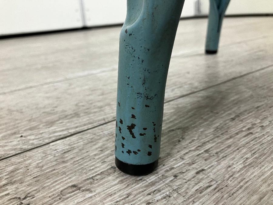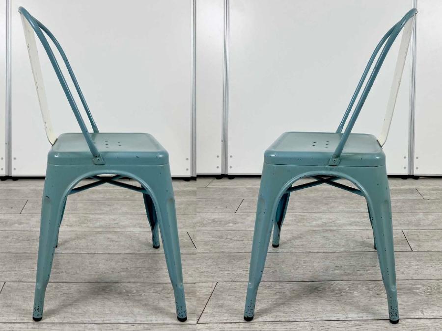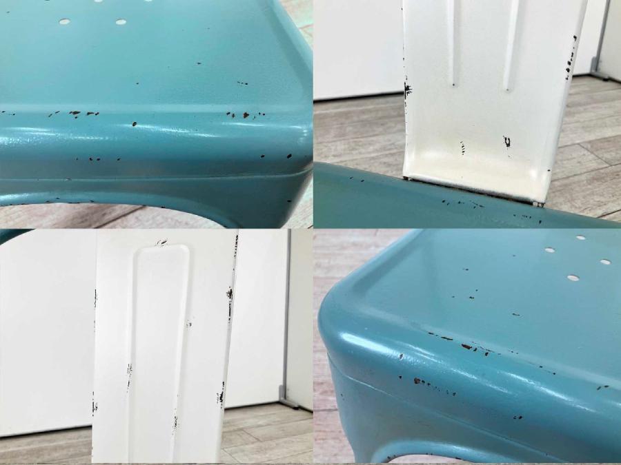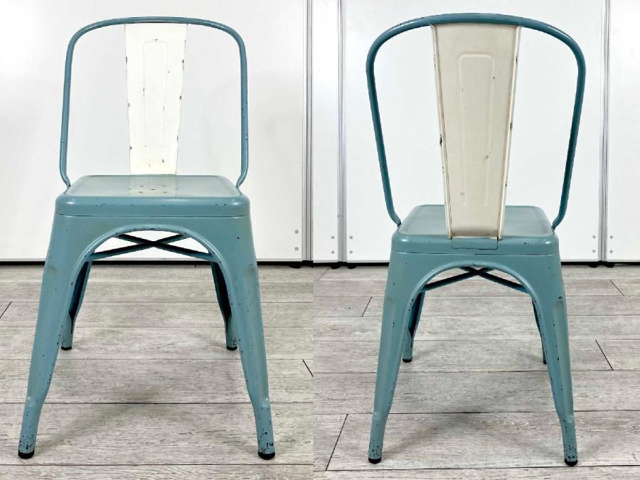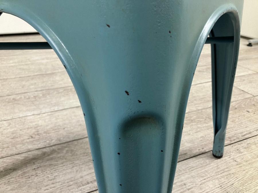 長年使い込まれたようなヴィンテージ塗装を施したスチール製スタッキングチェア。