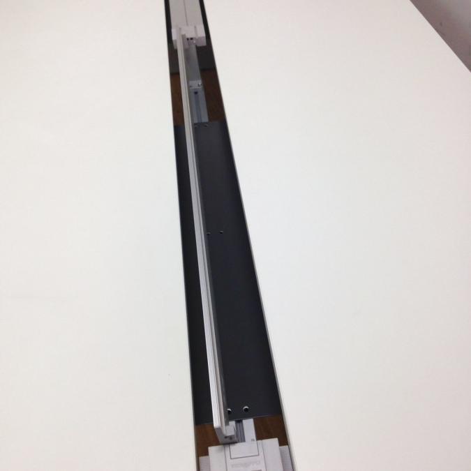 PCの電源やLAN回線等のコードを収容する大型コードダクトを備え、