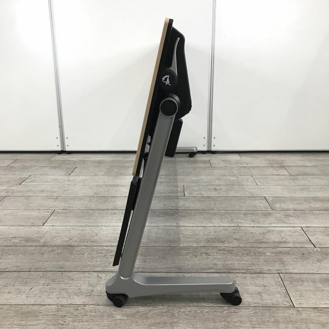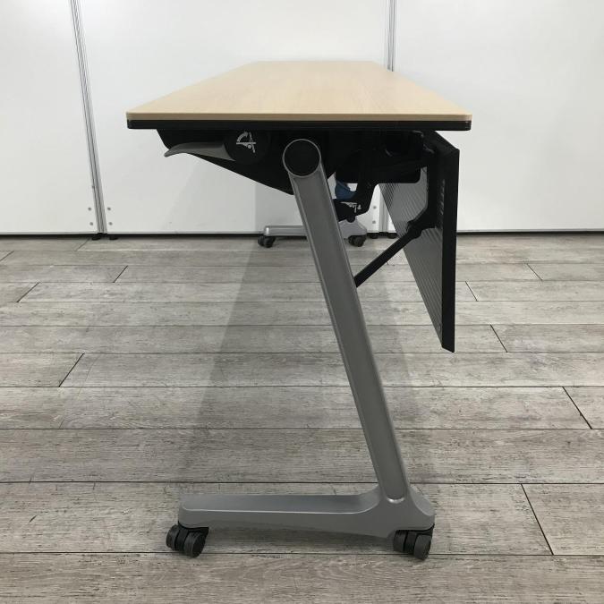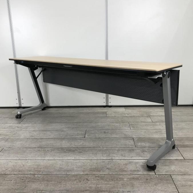【折りたたみ収納が秀逸・スタイリッシュなデザインのサイドフォールドテーブル!】■オカムラ(okamura)製 インターアクトPRO サイドスタックテーブル 幅1800mm 幕板パネル付 ■木目調ナチュラル天板- 千葉店