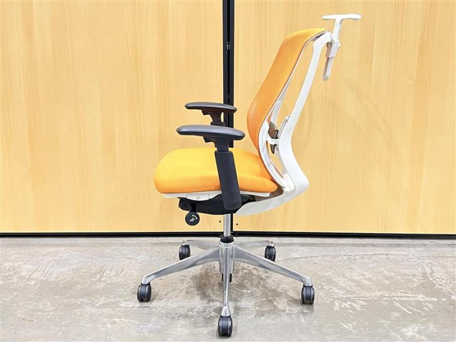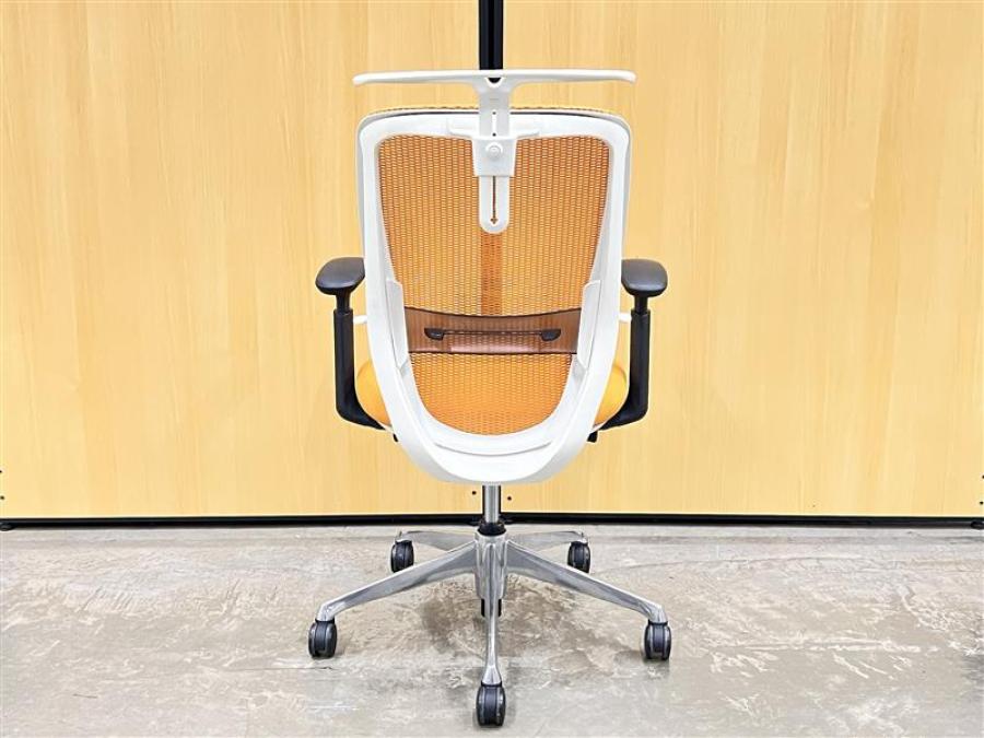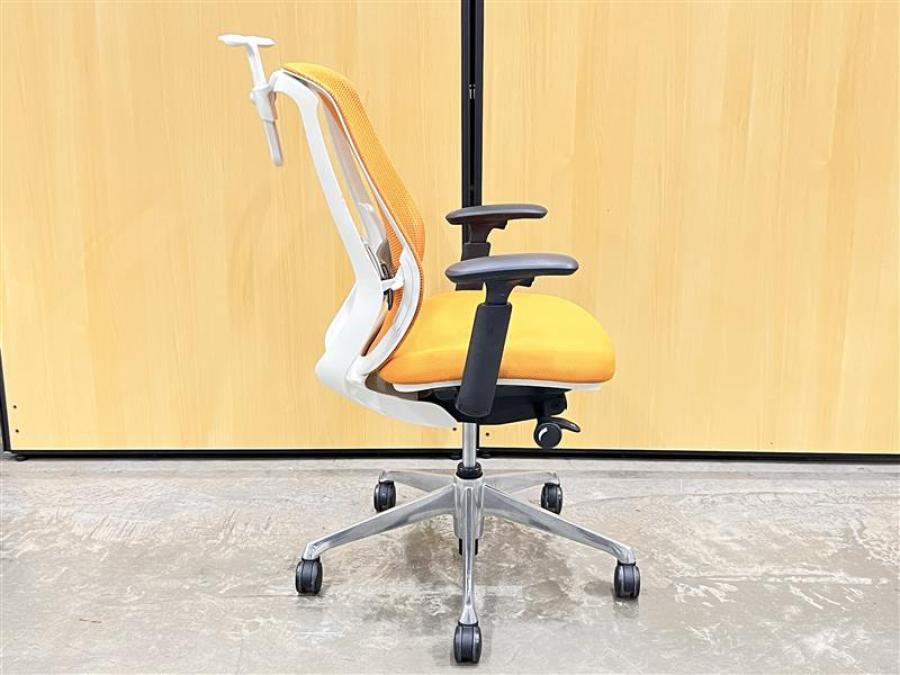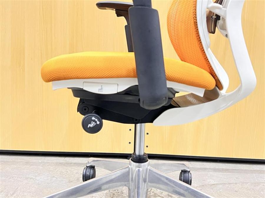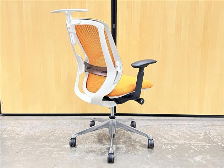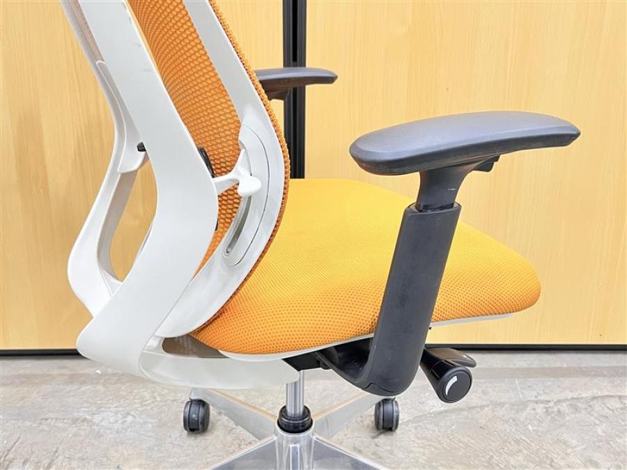 【在庫入替セール品!】【背のカーブを変えられる新感覚のオフィスシーティング!】■オカムラ シルフィーチェア 可動肘付 オレンジ ハンガー付 ホワイトフレーム ■新感覚のオフィスシーティング!【Okamrua Sylphy】