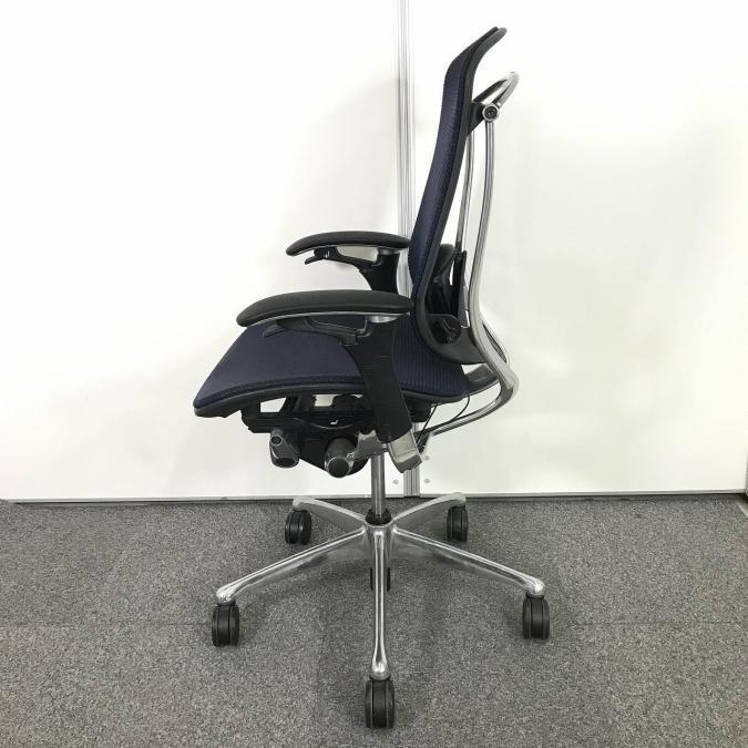 【オカムラ製の最高級チェアが残り1脚限りです!!】オフィスバスターズ 東大阪店 オカムラ製 コンテッサ シリーズ ダークブルー アジャストアーム※可動肘 背/座面メッシュ ランバー 世界で認められた革新的タスクチェア!人間工学に基づいた快適な座り心地を実現! 肘付きハイバックチェア!! 中古 外部倉庫品