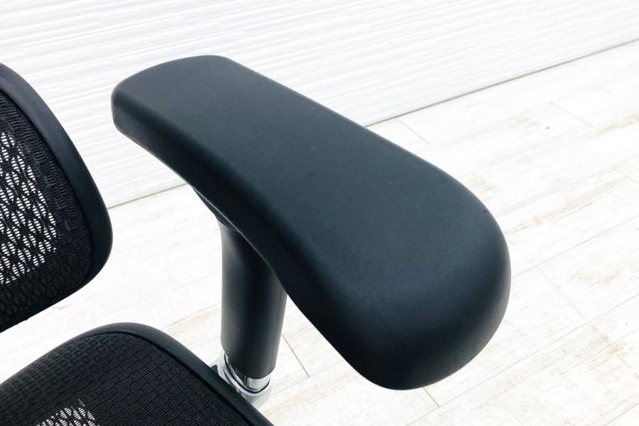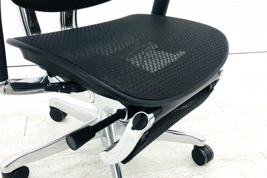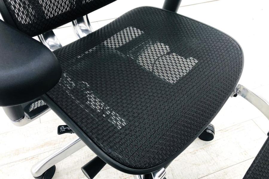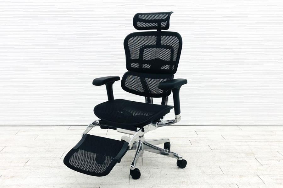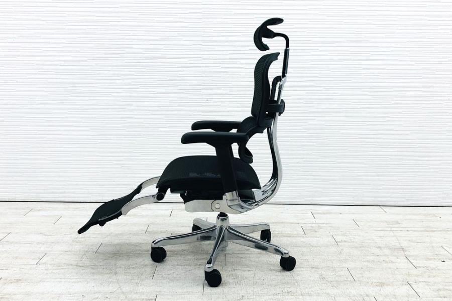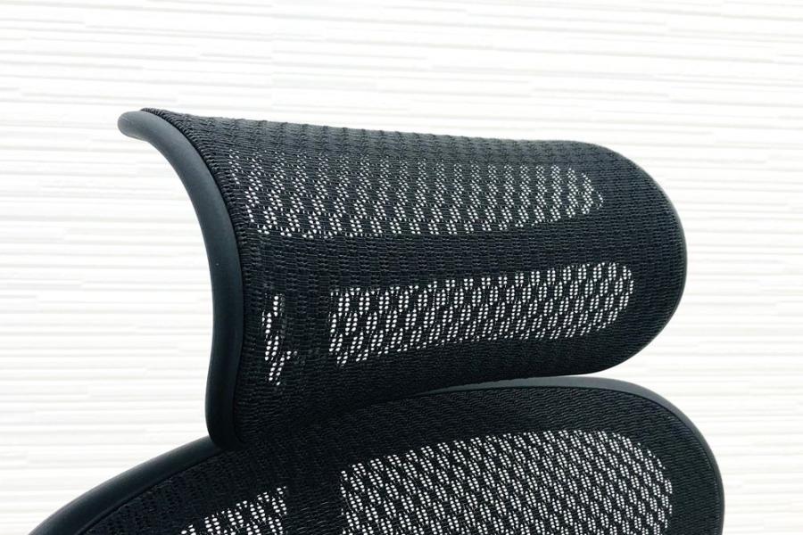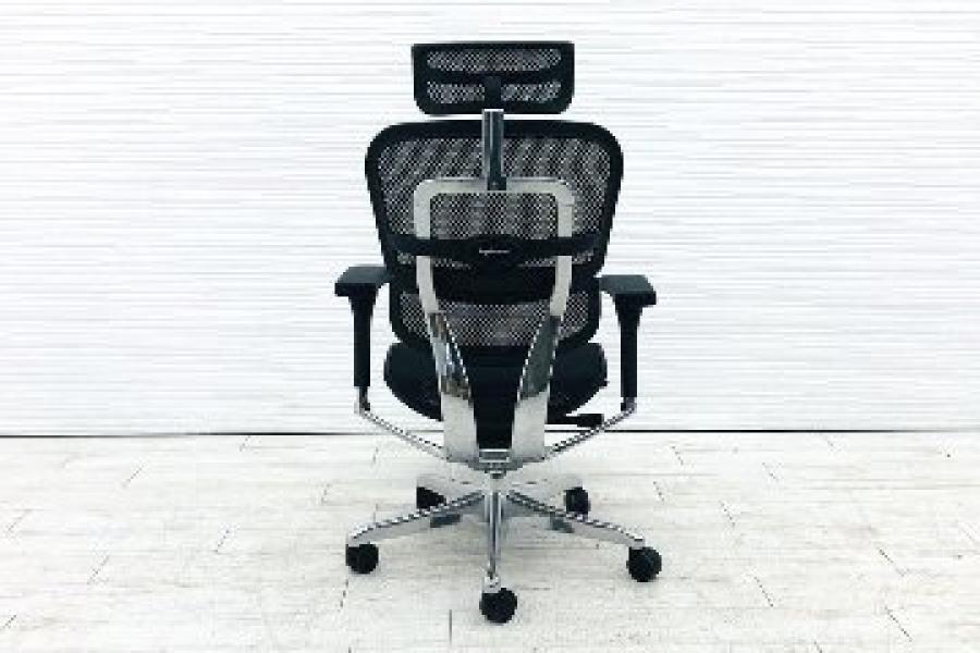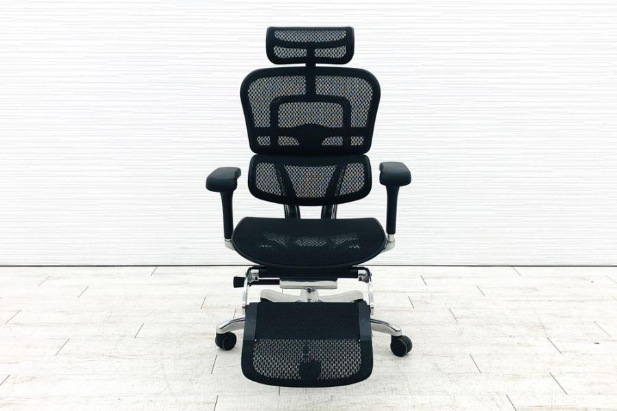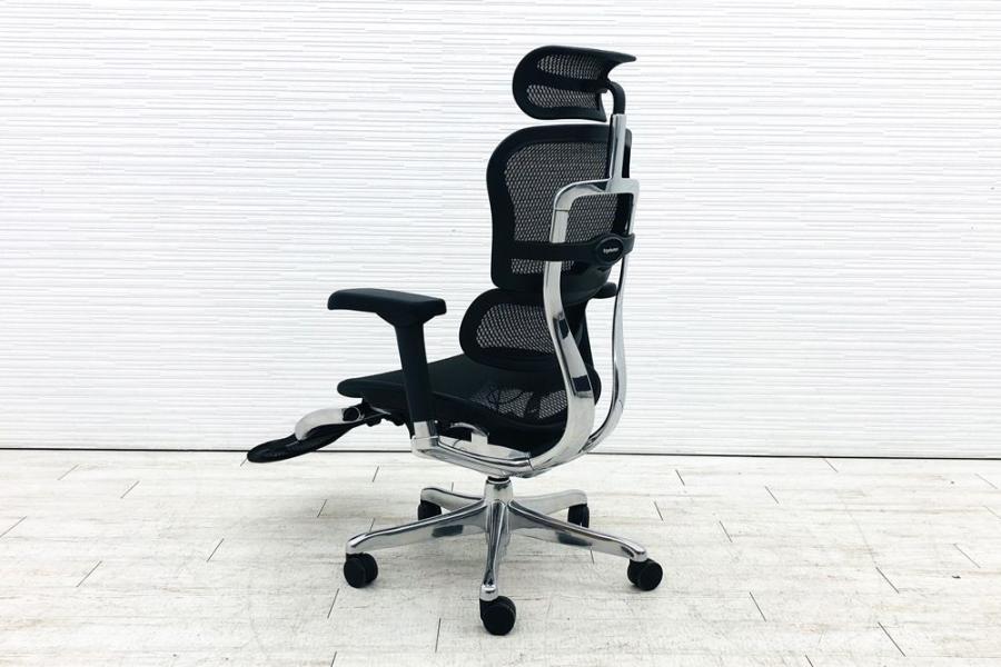 【限定1脚】中古では珍しいヘッドレスト付き ■エルゴヒューマンプロ 大型独立ランバーサポート ヘッドレストつき オットマンつき 可動肘 ブラック メッシュチェア