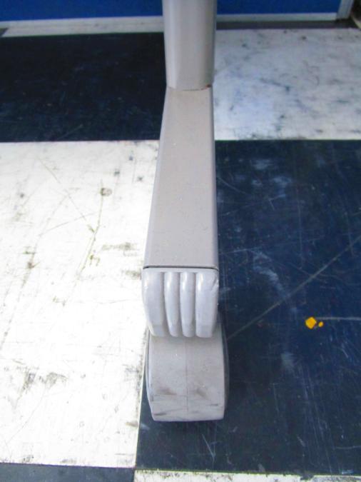 - 一部不具合あり天板歪み、アジャスター無し、キャスター使用不可ようなそのテーブルの本来の効用を果たすための機能以外の一部が使用不可な状態。(例、キャスターロッ ク機能使用不可、棚板無し等がある。)