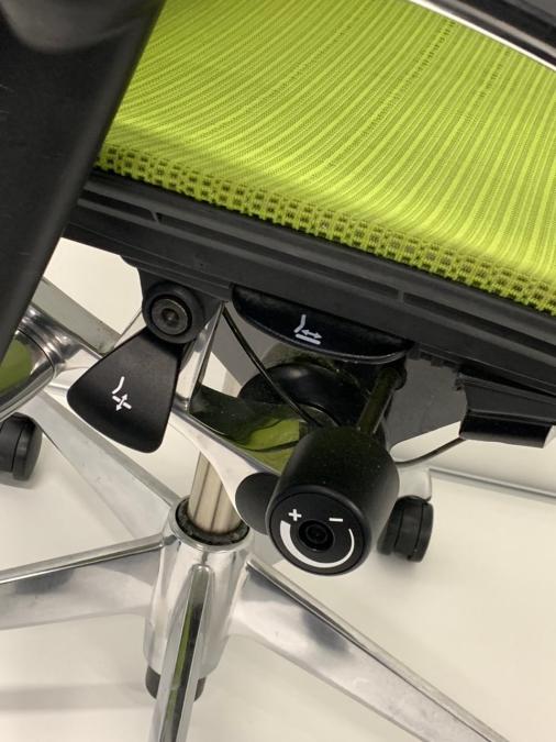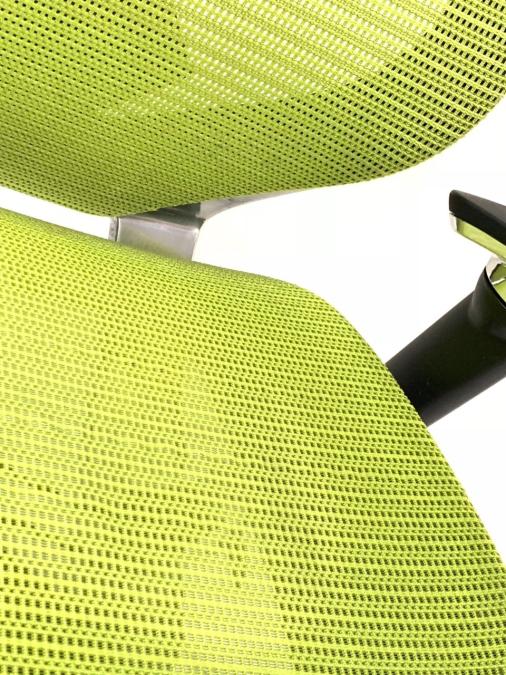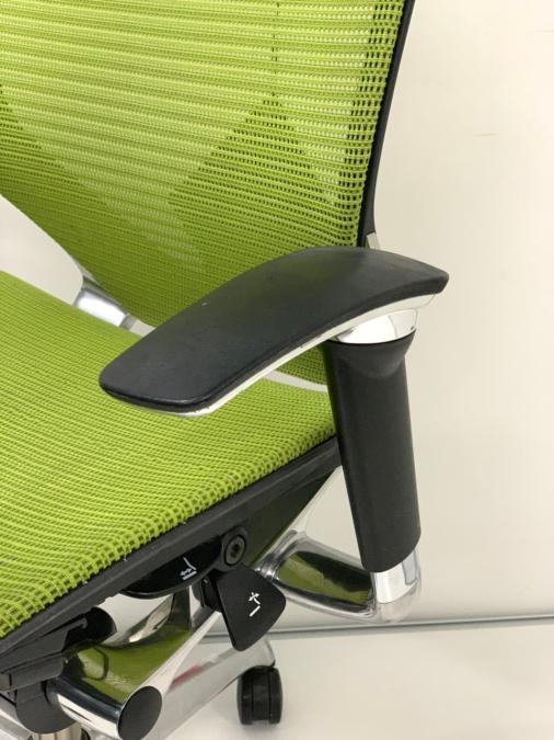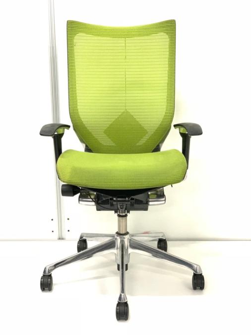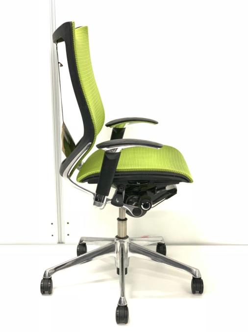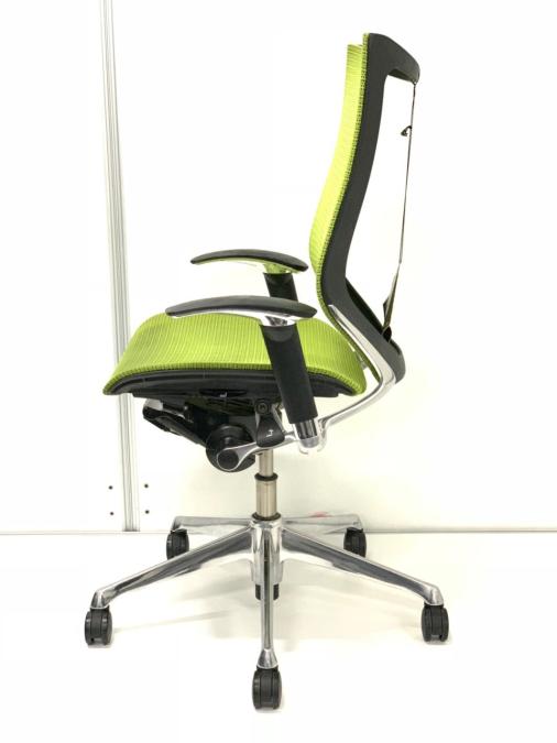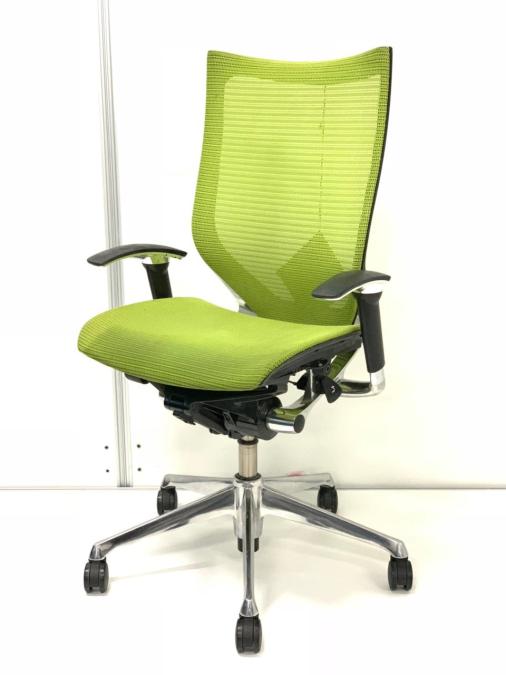 【☆良い椅子は腰を守る投資です!】■オカムラ製 バロンチェア 可動肘付 ライムグリーン 座面メッシュ ポリッシュフレーム ■ベストなポジションが得られる先進設計!- 川崎店