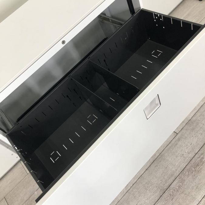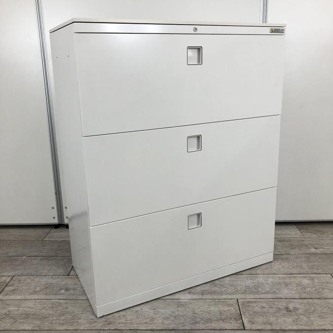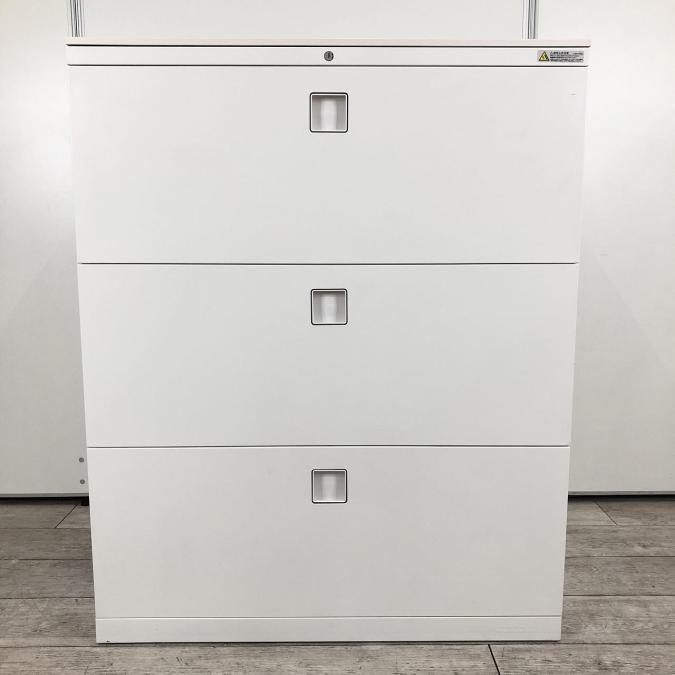 【マルチアクセスのハンドルで上下左右どこの角度からでも開けられる!定番収納3段ラテラル!】■オカムラ(okamura)製 レクトライン ローキャビネット 3段ラテラル ■ホワイト- 名古屋本店
