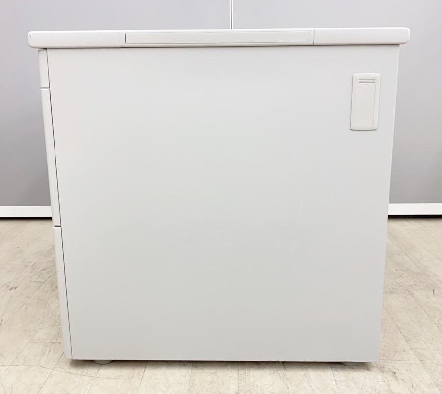 - 袖机のワゴンは、最下段がロング引出しになっており、従来より収納力120%アップ。