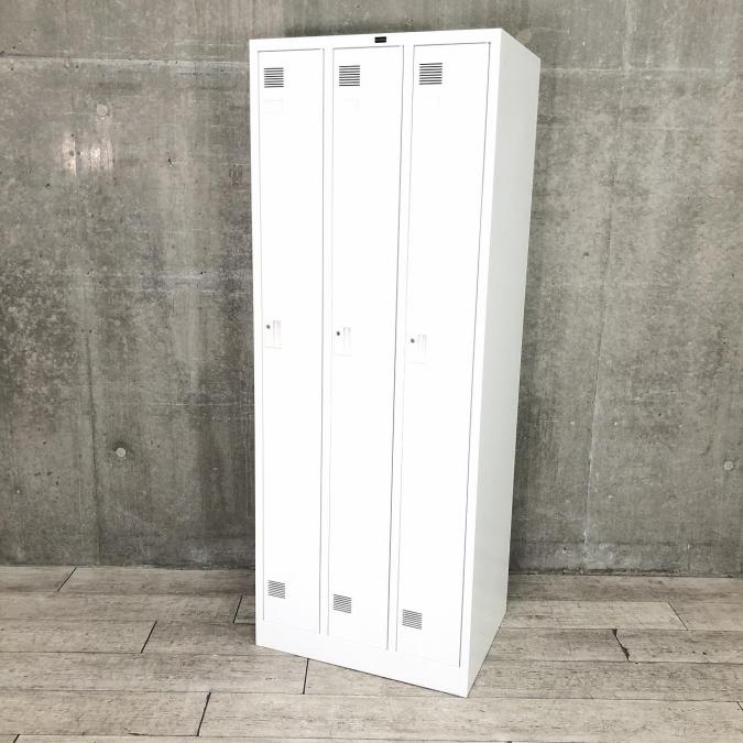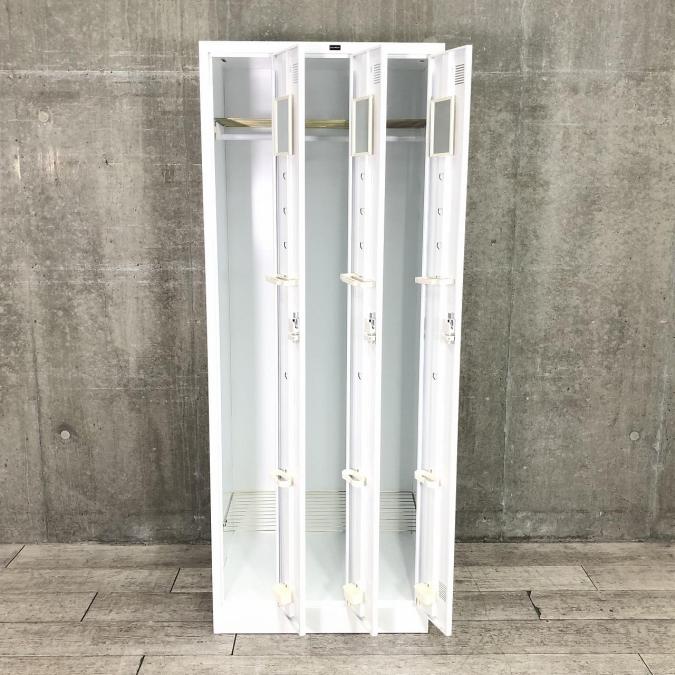 【コート類も入る縦長ロッカー!移転や増員を検討されている方にオススメ!】■内田洋行(UCHIDA) システムロッカーNS型 3人用更衣用ロッカー ■シリンダー錠 ■ホワイト- 品川・三田店