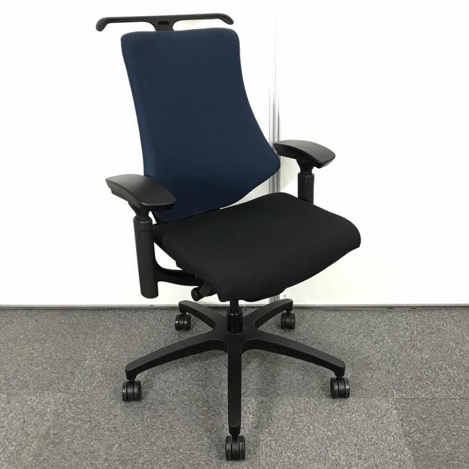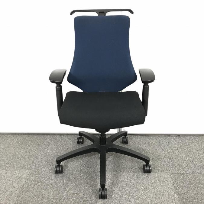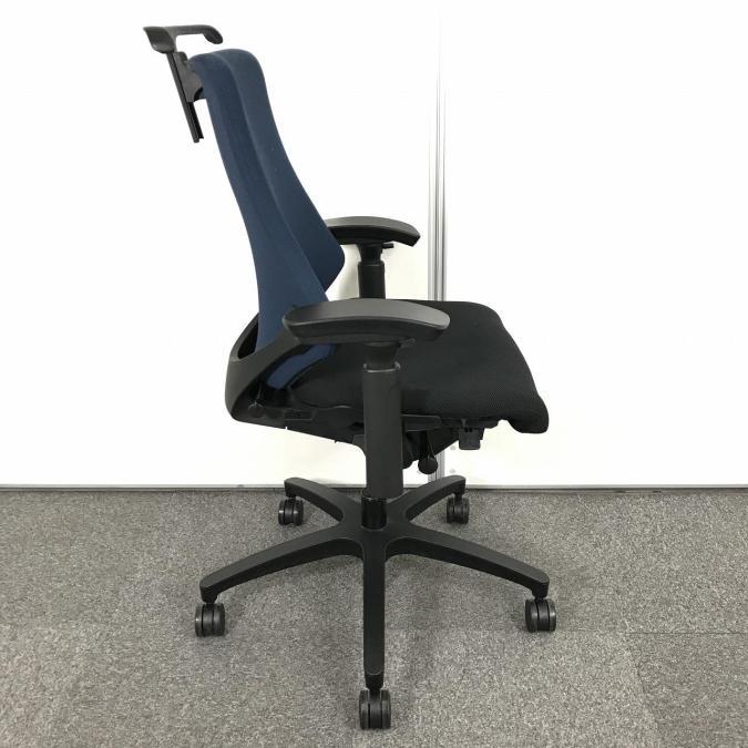 【包み込まれるフィット感!】 ■イトーキ製 エフチェア 肘付 ネイビーブルー ■デスクワークの疲労を軽減!