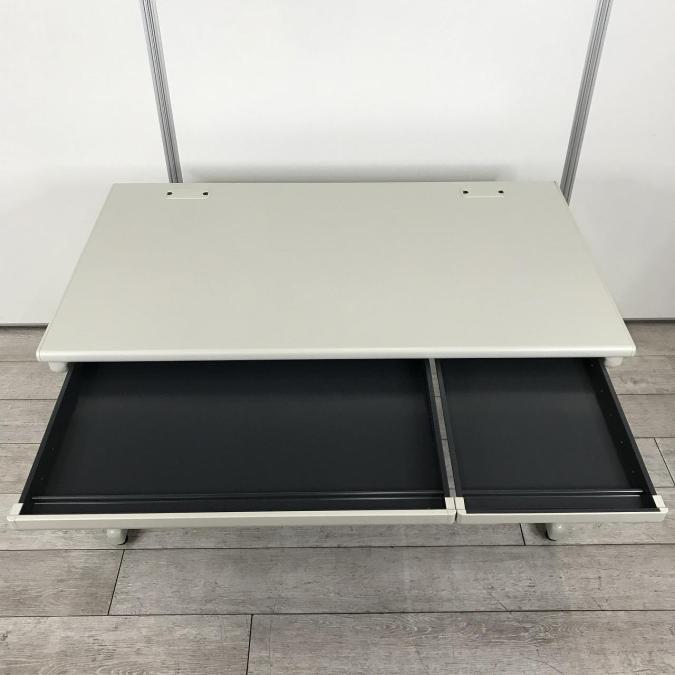 天板の下には一段の引き出しが2ヶ所ついており、文具や小物、簡単な書類等も収納可能です。