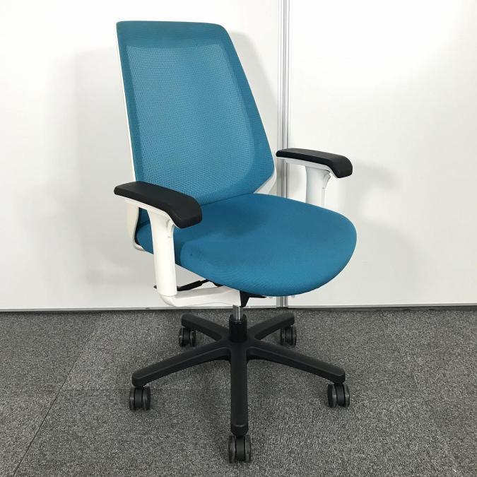 【在庫セール品・1脚限定】【T11】■イトーキ(ITOKI)製 ノナ(nona)チェア 肘付ハイバックチェア ■背面メッシュ ■可動肘 ■ブルーグリーン ×ホワイトシェル【理想的な作業姿勢をキープ!コンパクトで使い勝手抜群!】