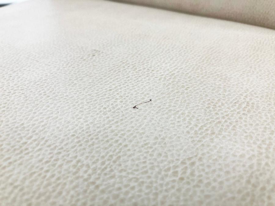- あり黄ばみ・変色が広い範囲にうっすらある、または濃い黄ばみ・変色が一部ある。(例、座面・背もたれ、脚部等にある。)