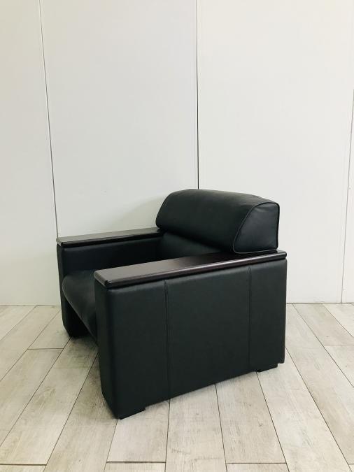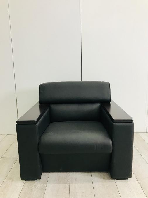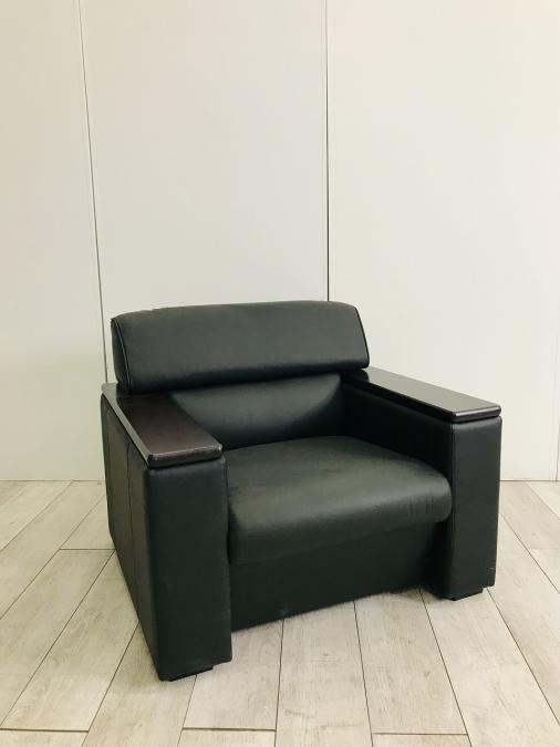 【上質な質感・一人掛けソファ】【8台入荷!】■オカムラ ソファ 1人用ソファ ■肘木つき レザー張り ブラック【ABW商材】【関東倉庫在庫品】【弊社使用欄:A00923303】- 全店共通商品