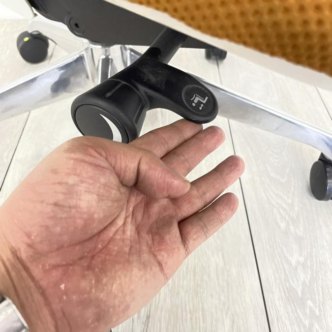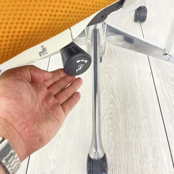 - 座面右下のダイヤル操作で、リクライニングの強弱調整が行えます。これまでのダイヤル式よりも、少ない回転数で、最弱?最強の調整が可能です。