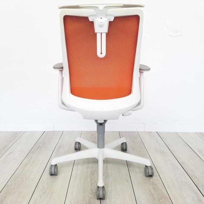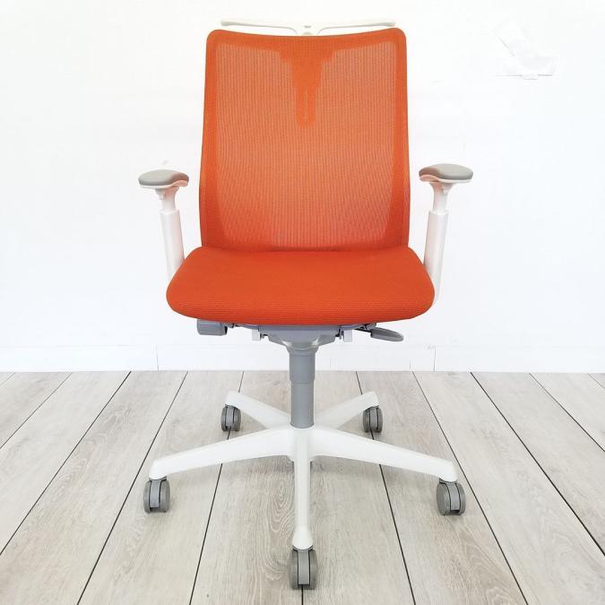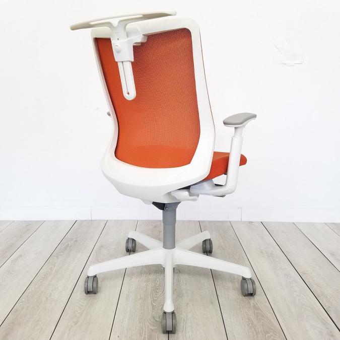 【オカムラ現行品のメッシュチェア!】【背中を立体的に包み込む!シルフィの座り心地を低コストで再現!】■オカムラ(okamura)製 フルーエントチェア(Fluent) 肘付き ローバック 背面メッシュ ■可動肘 ■オレンジレッド×ホワイトシェル