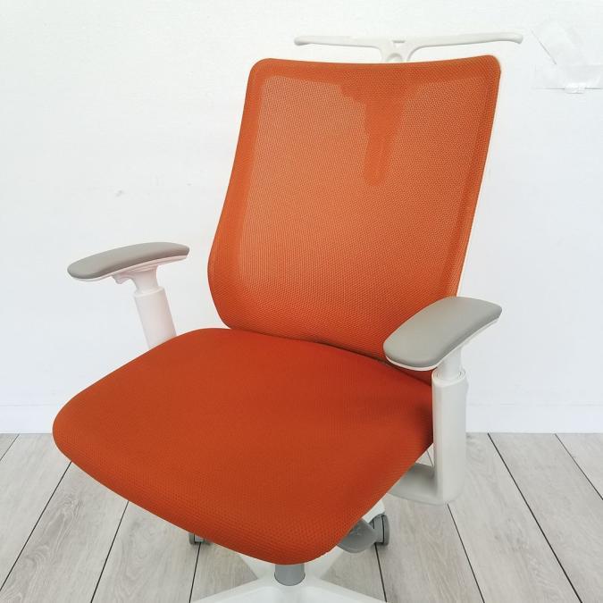 【背中を立体的に包み込む!】【シルフィの座り心地を低コストで再現!】/オススメ(おすすめ) /人気商品【弊社使用欄:A01034520】■肘付き ローバック 背面メッシュ ■可動肘 ■オレンジレッド×ホワイトシェル/オカムラ(okamura)製 フルーエントチェア(Fluent)