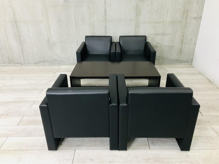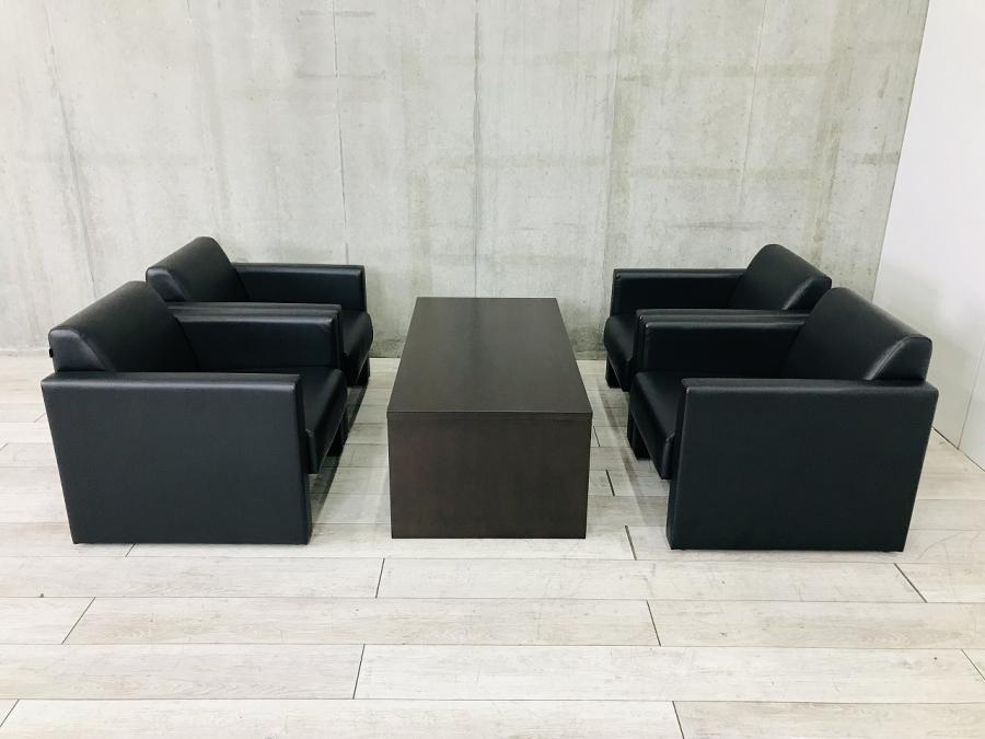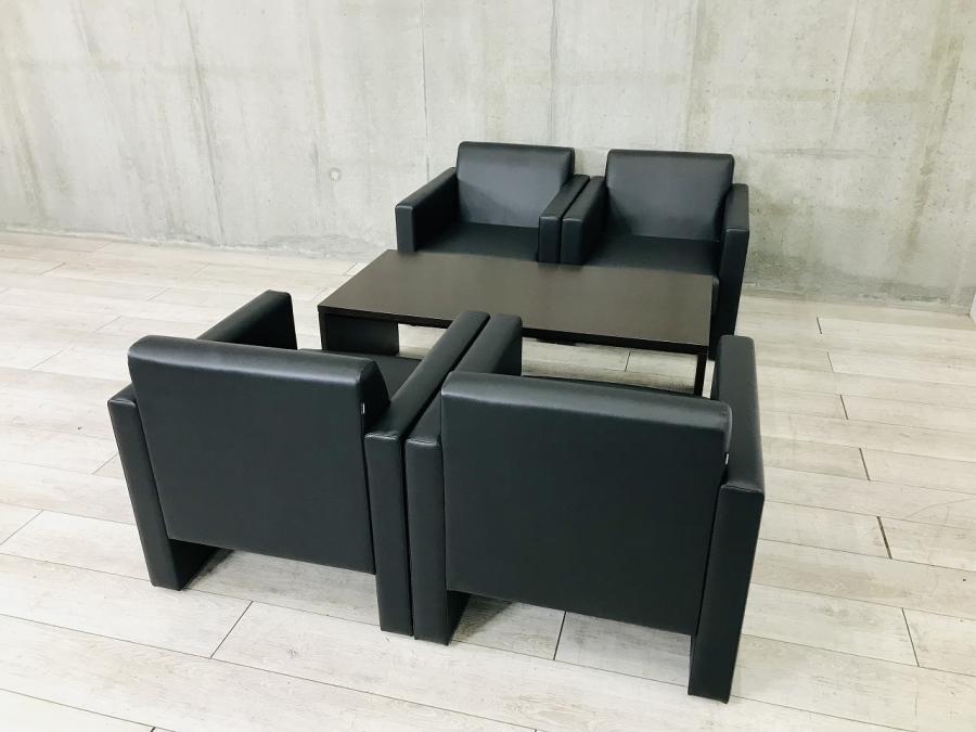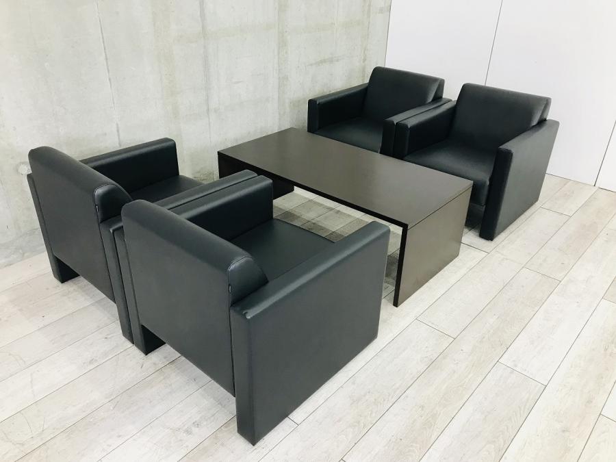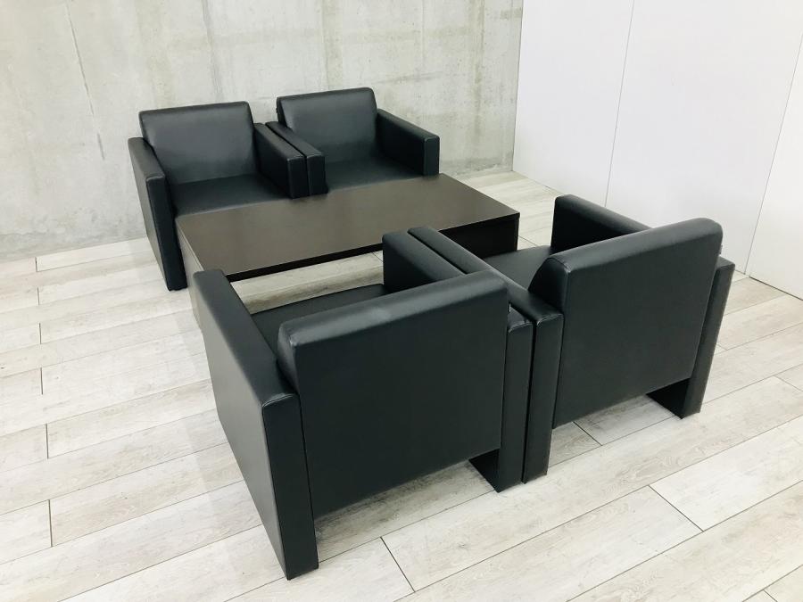 【オカムラ製1Pソファー4+イトーキ製センターテーブルの応接セット】【ミドルクラスの応接セット!】■オカムラ(okamura)製 S-1Rシリーズ 1人用応接ソファー4台 & イトーキ製 クロシアシリーズ センターテーブル / 応接セット一式 ■ソファーブラック センターテーブル木目ブラウン【ABW商材】【関東倉庫在庫品】【弊社使用欄:A00977262/A00977261】- 全店共通商品