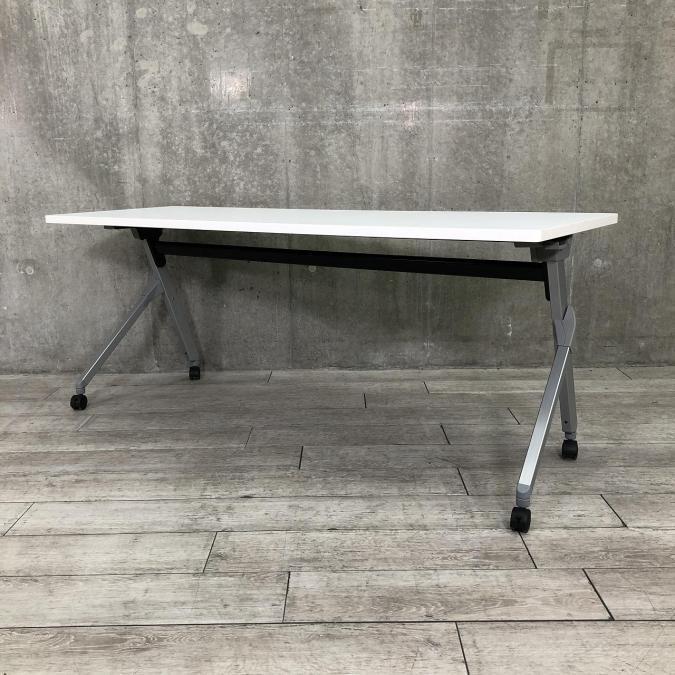 【在庫入替セール品】人気のスタックテーブル オカムラ フラプター ホワイト 幕板付き 折り畳める おすすめ!