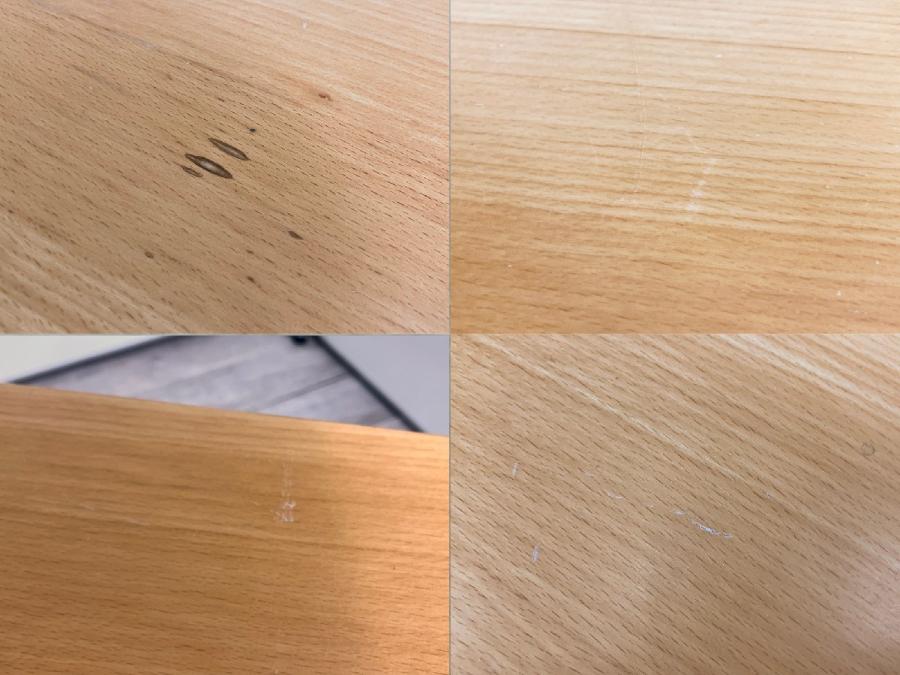 - 目立つ箇所あり傷・凹みが多数、深い傷・凹みが一部ある。(例、天板、幕板、棚板、サイド部分、脚部等にある。)