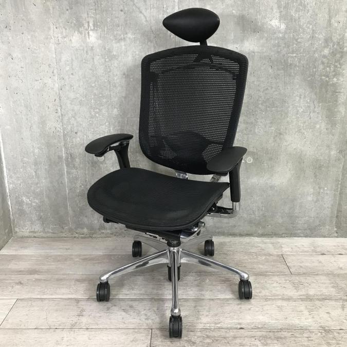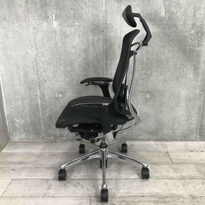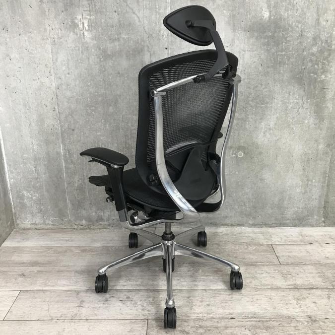 【定価約30万円】【小型ヘッドレスト付きのハイバックOAチェア】■オカムラ製/コンテッサ/ハイバック/ブラック/ポリッシュフレーム/座面メッシュ/可動肘- 春日部・越谷店