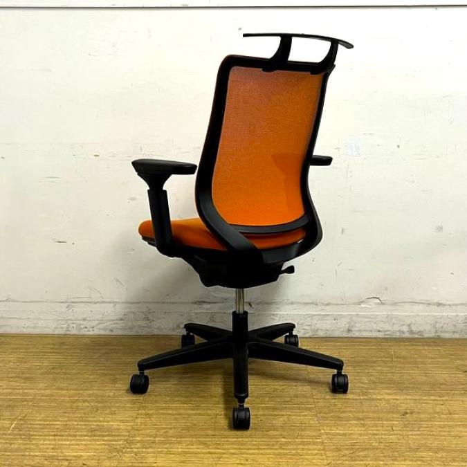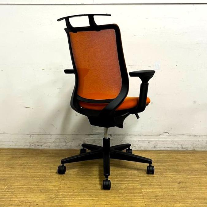 【テレワークにも最適!快適な座り心地と充実機能!】■コクヨ(KOKUYO)製 ミトラ(Mitra)チェア 肘付き ローバック 背面座面クッション ■可動肘付 ■オレンジ×ブラックシェル