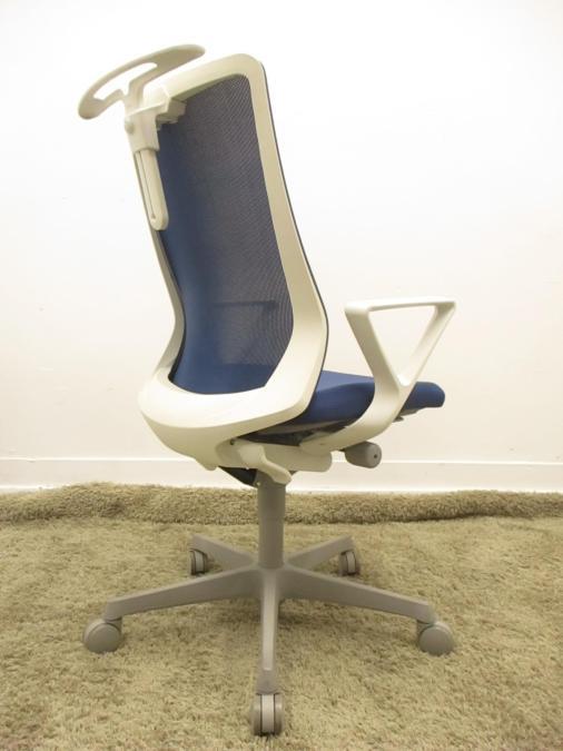 【背中を立体的に包み込む!】人のカラダに対する知見と独自技術が生み出した新感覚の座り心地!長時間のデスクワークにもおすすめの人気チェア!【在庫入替セール品!】 ■オカムラ/フルーエントチェア/ミディアムブルー ハイバック 固定肘付き