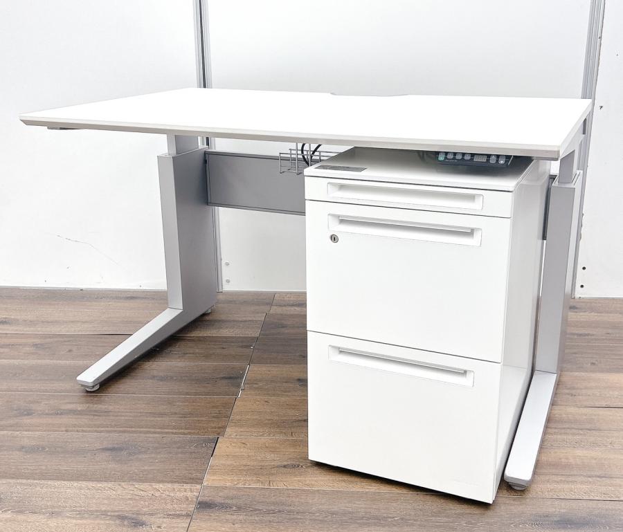 【セット品!】【天板上下昇降】デスクの最先端!天板が電動で昇降!オカムラ製 電動上下昇降デスク+3段ワゴンセット!■プロユニットシリーズ■W1150 H:645~1150【レア品!】- 埼玉本店