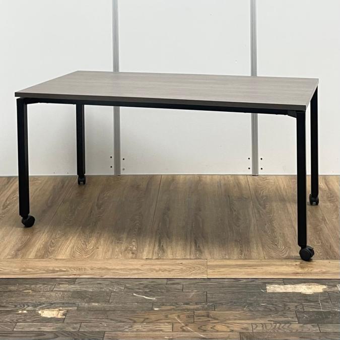 【20年度製】コクヨ製 JUTO(ジュート)シリーズ 木目ダーク天板 (ブラウン系) W1500×D750サイズ 4本脚キャスター付 4名様でのミーティングに!移動が楽なキャスター付! ミーティングテーブル!!- 京都東寺店