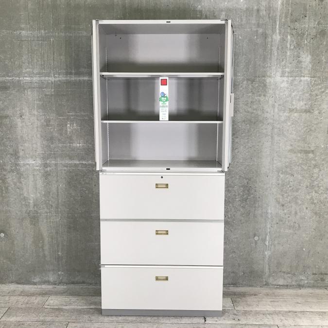 【中古】 シンライン HTM-109AAS-W9 / HTM-109HSS-W9 イトーキ/ITOKI ハイキャビネット/両開き+3段ラテラル 482309