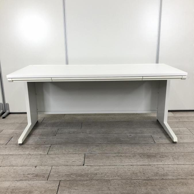 W1600mmとゆったり使えるサイズ感の平机 オカムラ アドバンスデスク ホワイト天板 薄引き出し付き ※樹脂部分に日焼け若干あり- 名古屋千種店