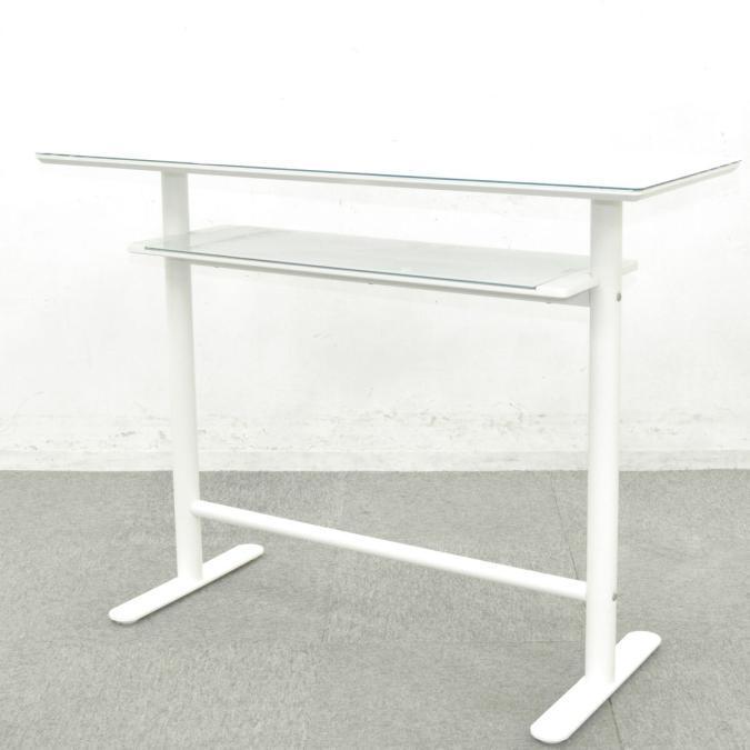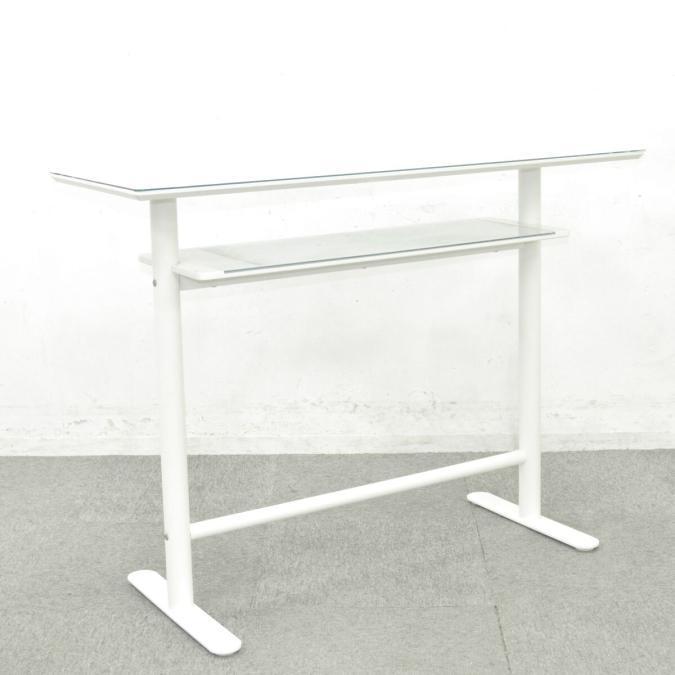 【1品限りの入荷!】カウンターテーブル W1200 D450 H900 その他メーカー ガラス天板 ホワイトAランク【シンプルかつ綺麗めなカウンターです。受付にあったらうれしんじゅ】- 大阪・堺店