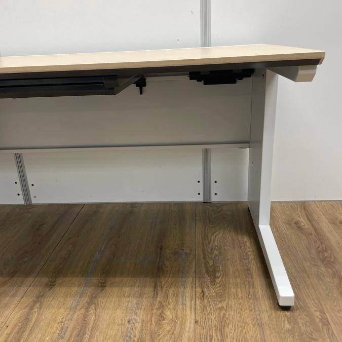 【ワークスペース広々!足元ゆったりの幅1400㎜タイプ!】■コクヨ(KOKUYO)製 isシリーズ(アイエス) 平机 幅1400㎜ 引き出し無し ■天板:木目ナチュラル 本体:ホワイト オフィスバスターズ東大阪店