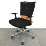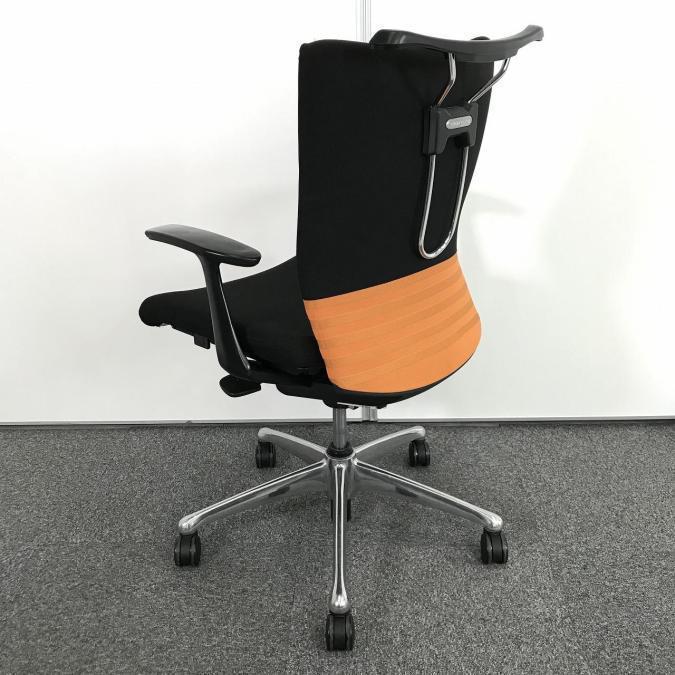 【人間工学に基づいた快適な座り心地!背あてのしなやかな曲線が背中にフィット!】■オカムラ製 フィーゴチェア (feego) 肘付きミドルバック シームレスタイプ ■固定肘 ■ブラック×オレンジ ※コートハンガー外し跡のある商品となります。【入替セールにつき30%OFF!】