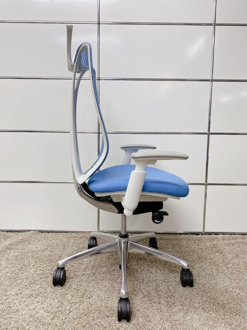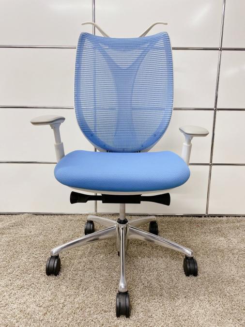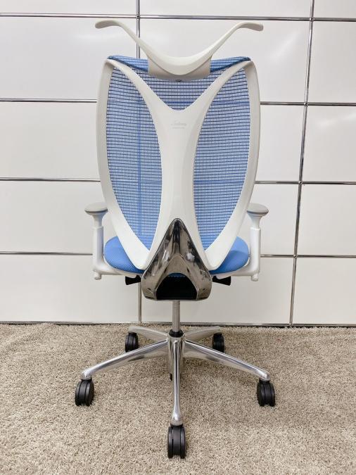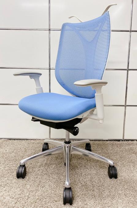 【在庫セール品】【定価約16万円】【前傾チルト付!流れるような美しいフォルムの最高級メッシュチェア!】■オカムラ(okamura)製 Sabrina(サブリナ) ハイバック 肘付き ■可動肘 ■背面メッシュ:アクアブルー/座面:ブルー×ホワイトフレーム【AD】