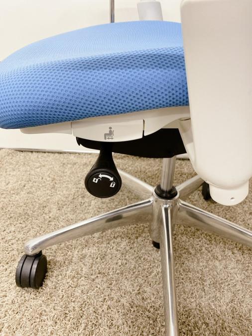 - 座面右下のレバーをスライドさせる「クイックスライドオペレーション」で、リクライニング反力を調整できます。強さの状態が視覚的にわかるため、直感的に操作がおこなえます。