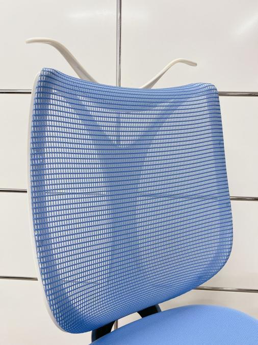 【在庫セール品・2脚限定】【T11】■オカムラ(okamura)製 Sabrina(サブリナ) 肘付ハイバック ■背面メッシュ ■可動肘 ■背アクアブルー × 座ダークブルー × ホワイトシェル【前傾機能付きで作業効率アップ!オフィスにもご自宅用にも人気の一品!】