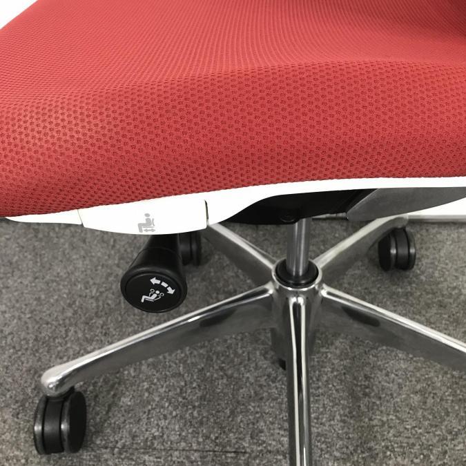 【来店限定キャンペーン】【定価約17万円】【クッション性抜群!長時間のデスクワークにおすすめ!】■オカムラ/サブリナ ■背もたれレッド/座面ブルー/フレームホワイトの珍しいトリコロールカラー!■背もたれメッシュ■前傾チルト機能付き