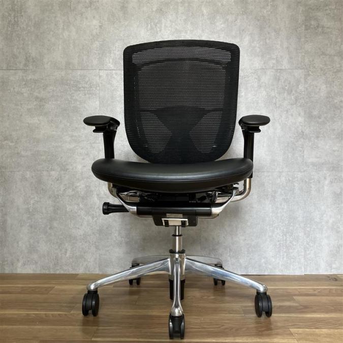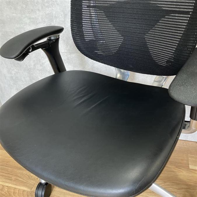 【福岡西店撮影】【1脚限定!】最高峰!ハイグレードメッシュチェア!高級感のある座面レザー仕様が入荷【役員用/ご自宅用にも】 ■オカムラ(okamura) コンテッサ(Contessa) ■ハイバック 背面メッシュ 座面レザー 可動肘 ブラック【福岡オフィス家具】【福岡中古家具】【中古事務什器】【中古チェア】【中古椅子】- 福岡西店