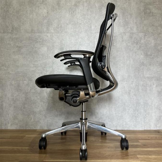 入替セール品につきお値下げ!【世界で認められた革新的タスクチェア!人間工学に基づいた快適な座り心地を実現!】オカムラ(okamura) コンテッサ (Contessa) 革張り ハイバック肘付き 可動肘 ブラック 【座面シワ・リクライニングロック解除時異音があるため、Bランク品】【現物画像】