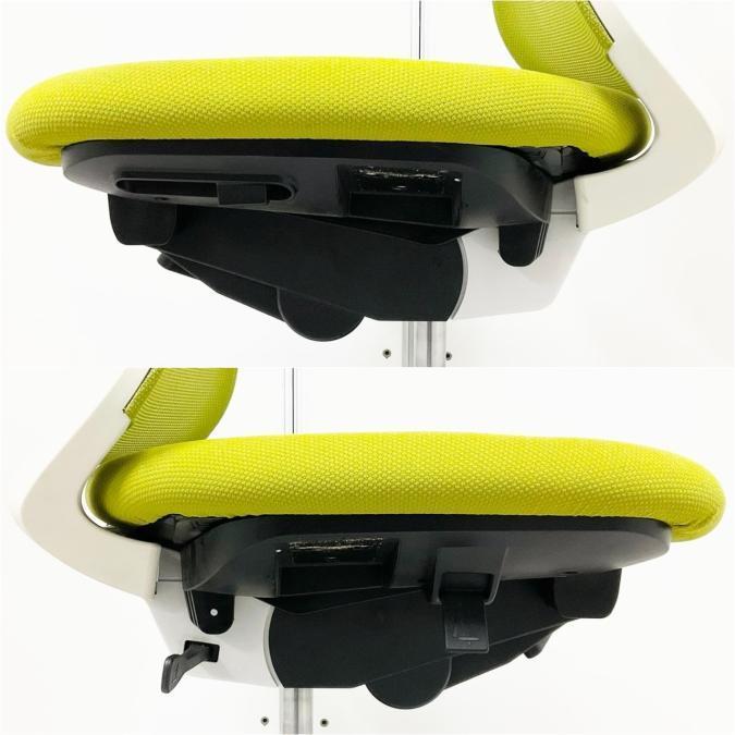 - 座面の高さは上下に90㎜、奥行は前後に50㎜調節可能。さらに骨盤を支えるポスチャーシート採用で着座時の前滑りを防ぎます。