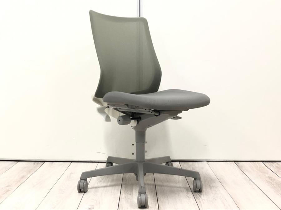 オカムラ フルーエント 肘無しローバックモデル 背メッシュ ミディアムグレー×ブラックフレーム【愛知・名古屋・豊田・静岡・浜松】