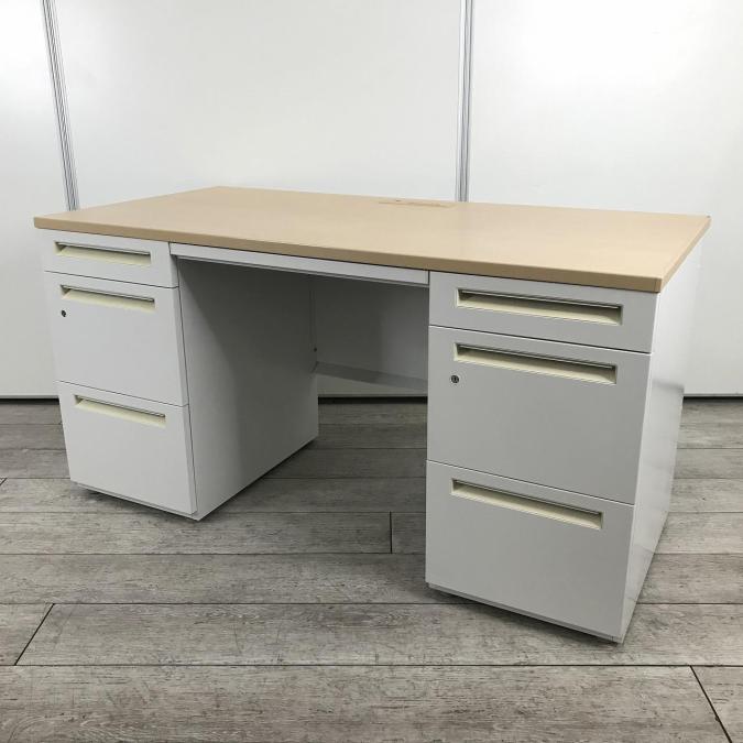 国内メーカー製 W1400mm両袖机 本体ホワイト ※高さ700mm