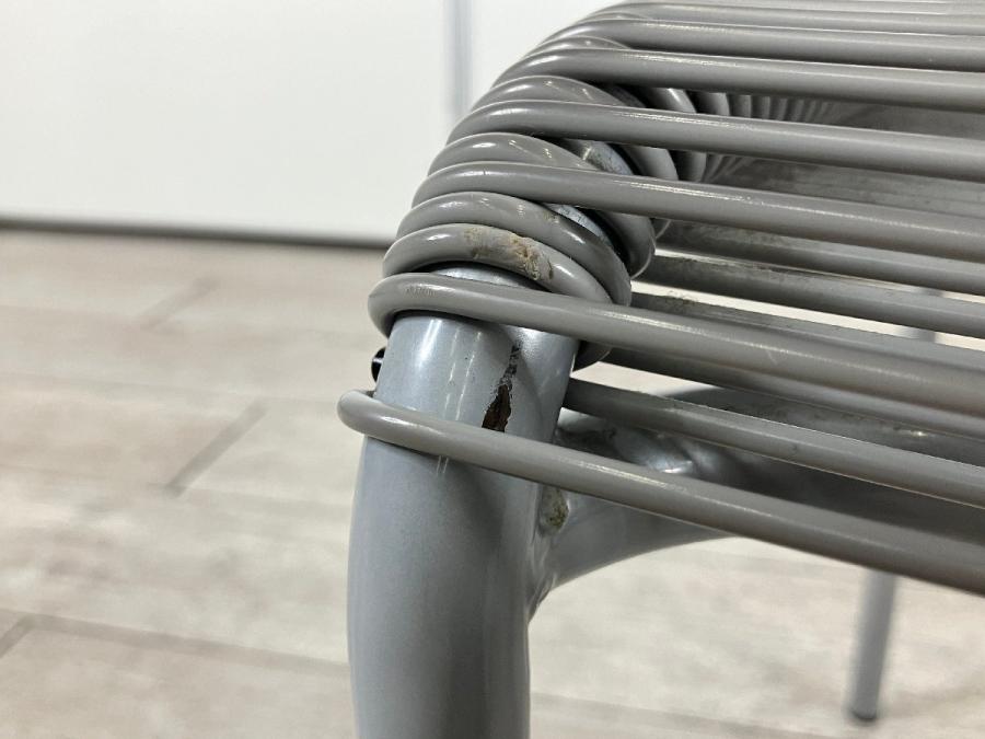 すっきりと美しいフォルムは勿論、実用的なスタッキング機能もポイントです。 フレームに巻き付けられたPVCコードは復元力があり適度な弾力を持ちます。 見た目からは想像できない快適な座り心地を持つ一脚となっております。
