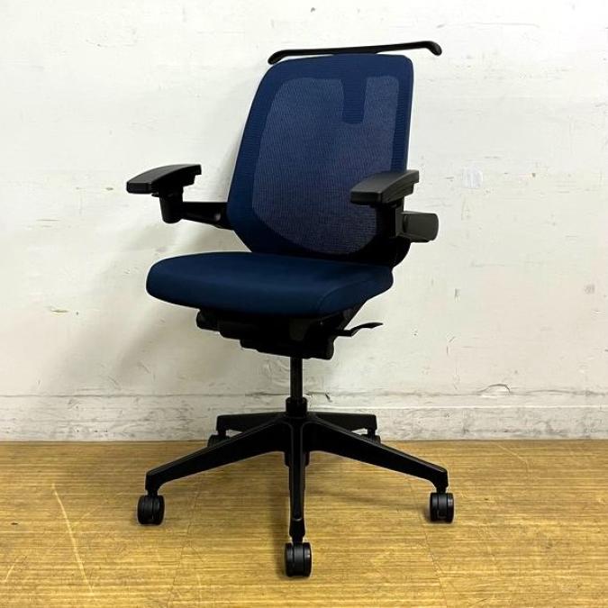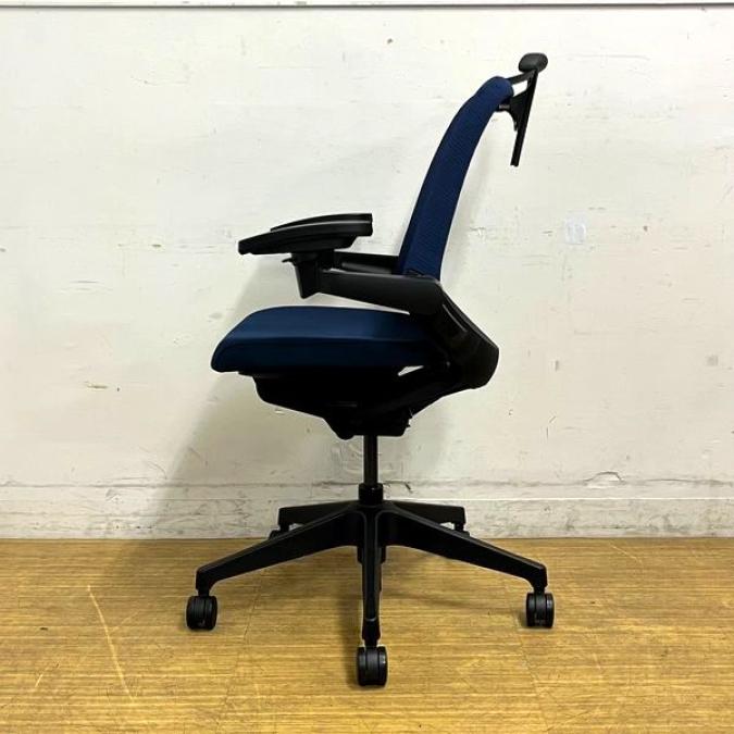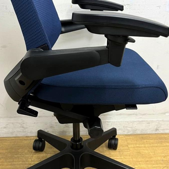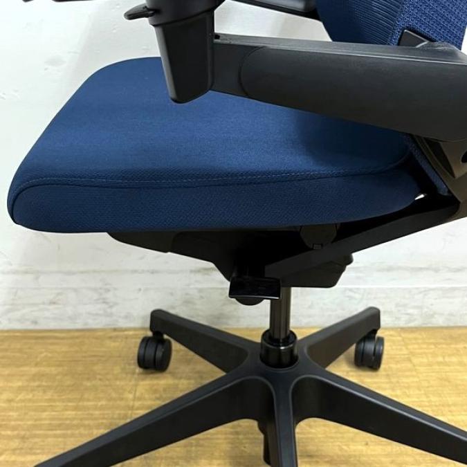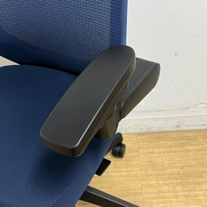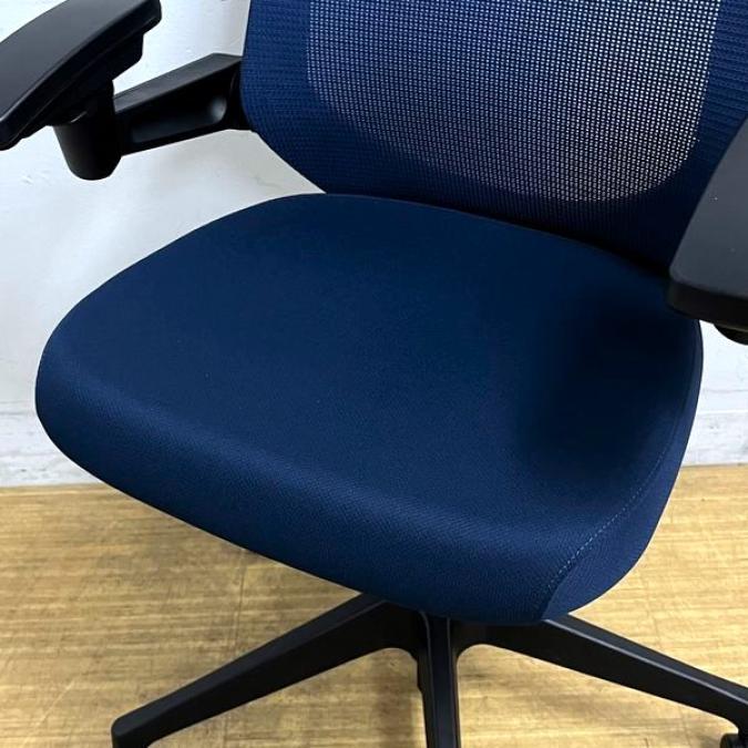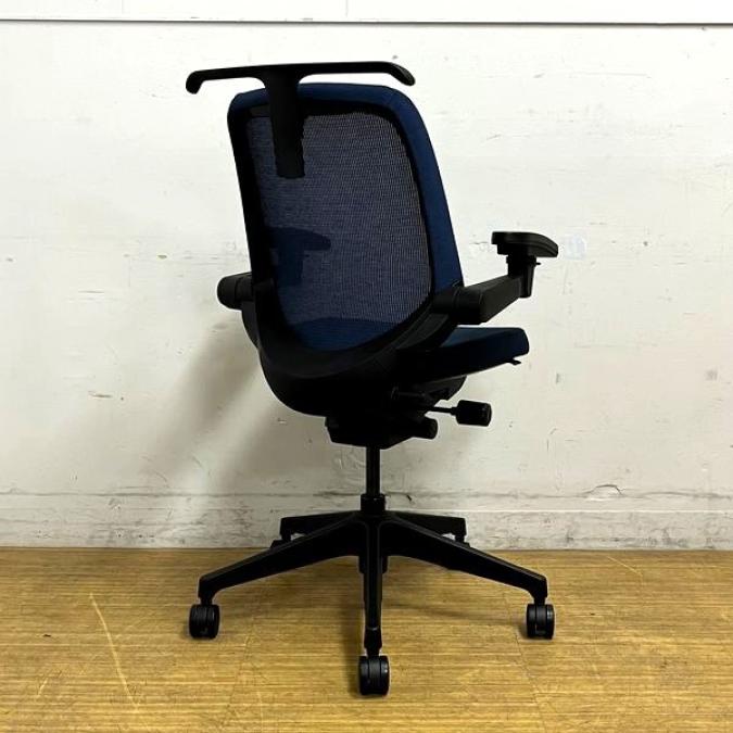 【2024年製で状態良好品】イトーキ ノート ローバックモデル アジャスタブル肘 ファッション性の高いタスクチェア プレーンメッシュ 張地:ネイビーブルー コートハンガー付き【TOGS】- 名古屋千種店