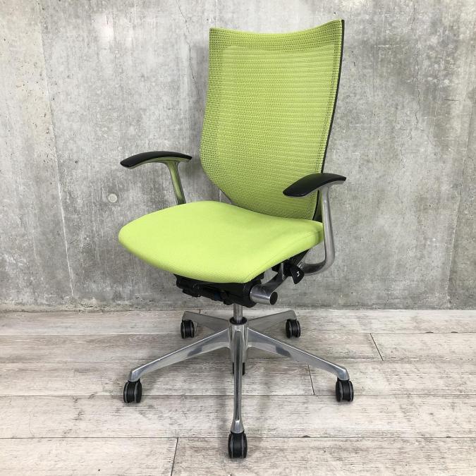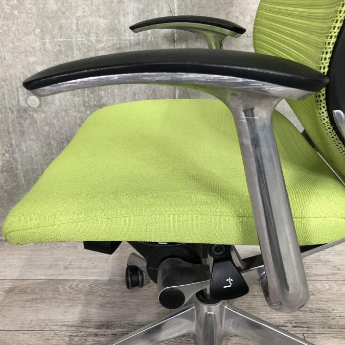 【硬めの座面が大人気!国内メッシュチェアの代表格!】■オカムラ(okamura)製 バロン(Baron)チェア バイバック 背面メッシュ 固定肘付き ■色:ライムグリーンサーキュラーバリューCO2削減量の算出について