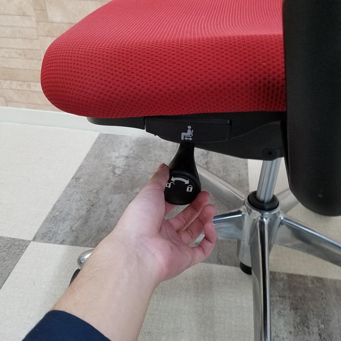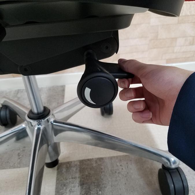 - 座面右下のレバーをスライドさせる「クイックスライドオペレーション」で、リクライニング反力を調整できます。強さの状態が視覚的にわかるため、直感的に操作がおこなえます。