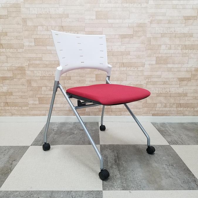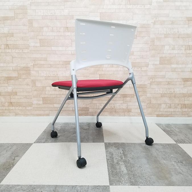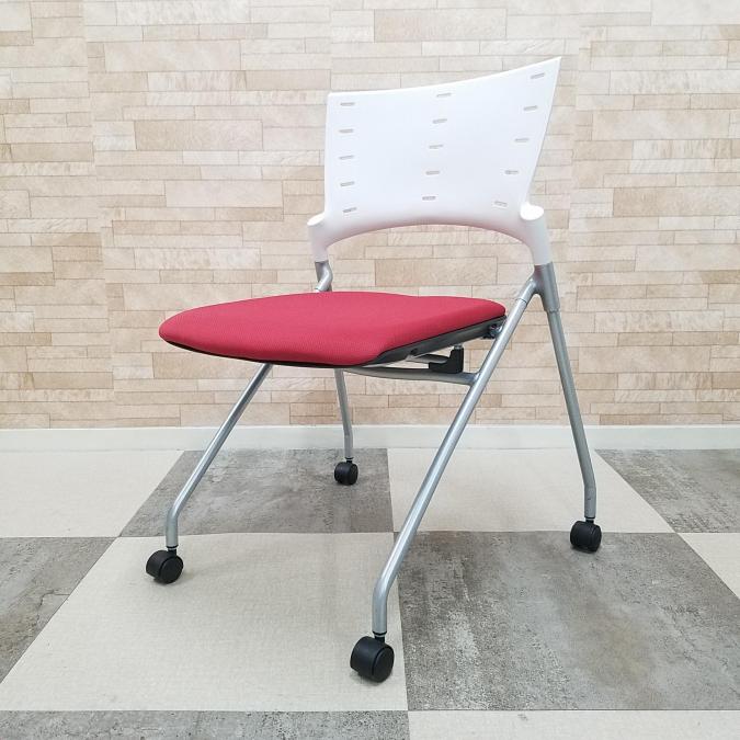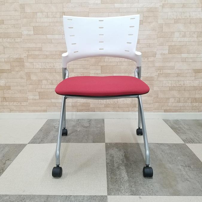 【2脚限定】定番人気のネスティングチェア! イトーキ 中古 OAチェア テレワーク 在宅ワーク ミーティング 会議 ラズベリーレッド- 大阪・堺店