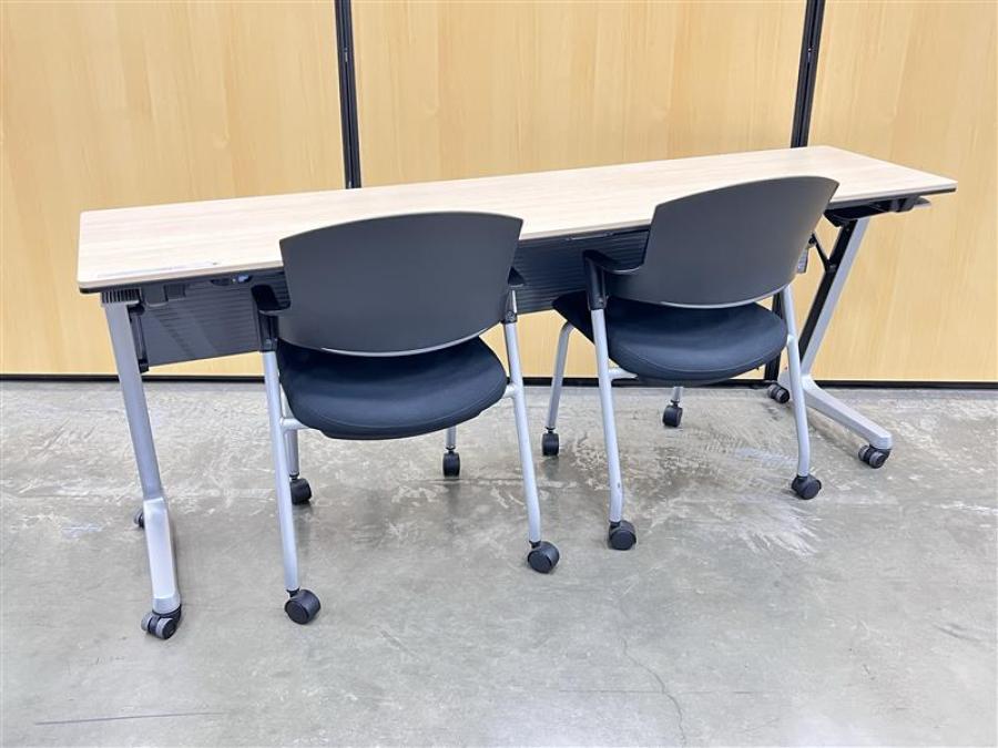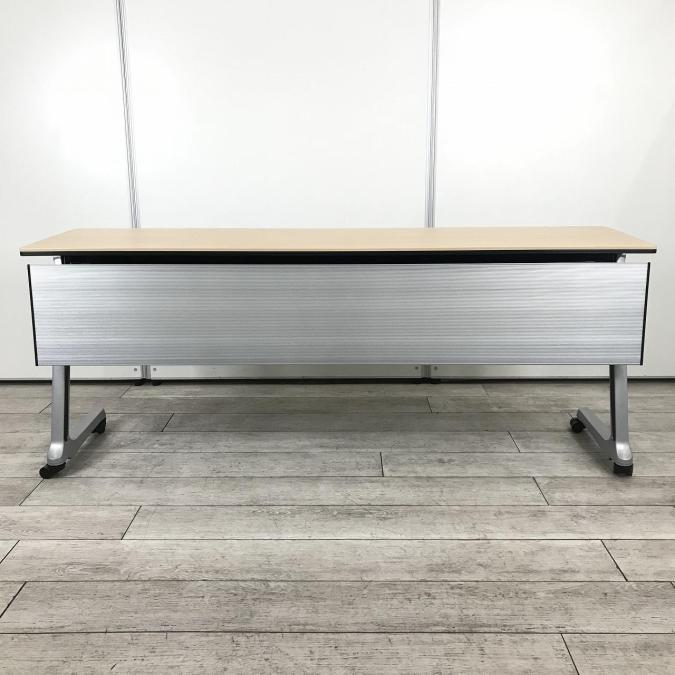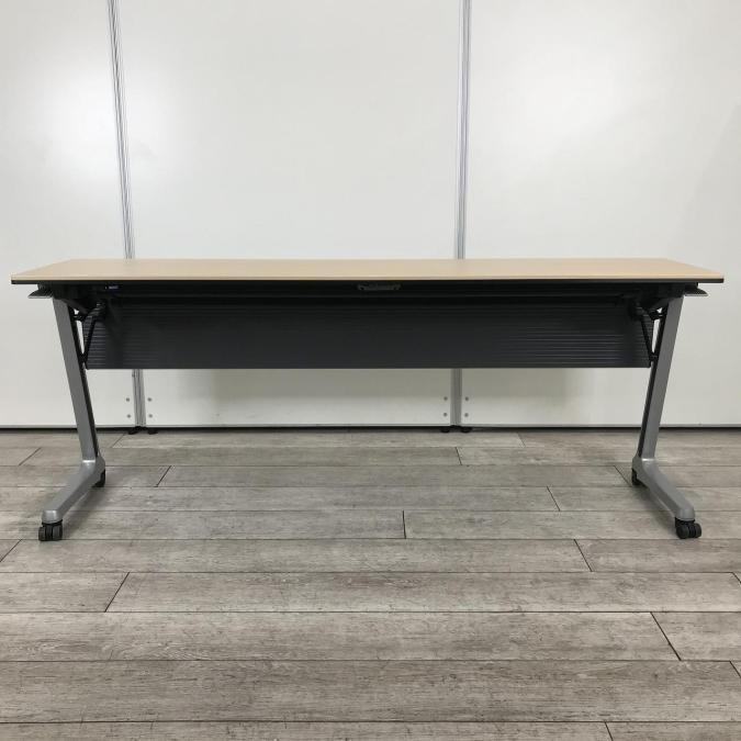 テーブル+ミーティングチェアのセット!【折りたたみ収納が秀逸・スタイリッシュなデザインのサイドフォールドテーブル!】■オカムラ(okamura)製 インターアクトPRO サイドスタックテーブル 幅1800mm 幕板パネル付 ■木目調ナチュラル天板 ■コクヨ/プロッティ【弊社使用欄:A00978047】- 在庫数