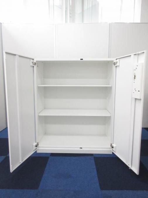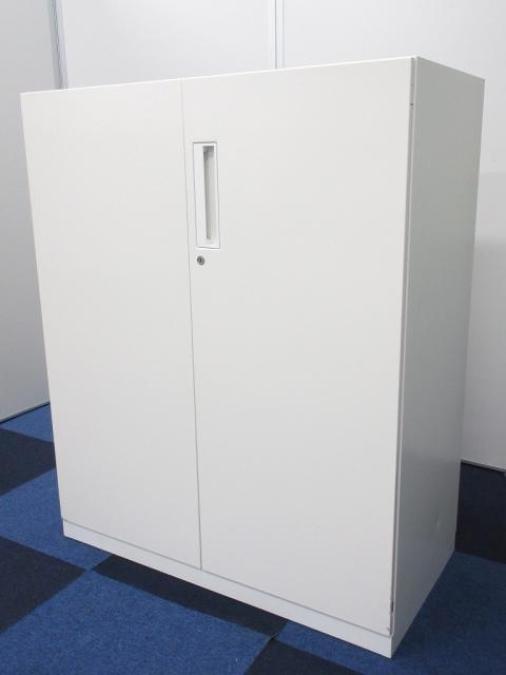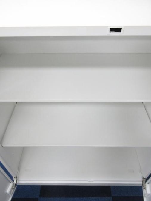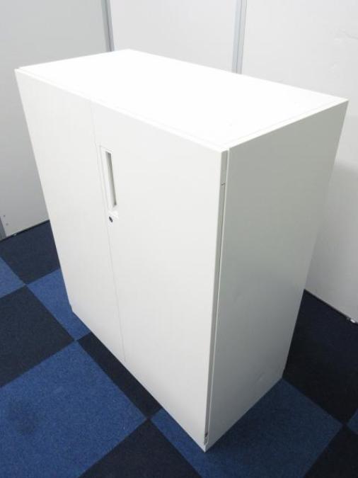【収納物がひとめで分かる両開き戸タイプ!】■コクヨ(KOKUYO)製 エディア(EDIA)シリーズ 両開き書庫 ローキャビネット H1130㎜ ■天板・ベース付 ■ホワイト ■シリンダー錠
