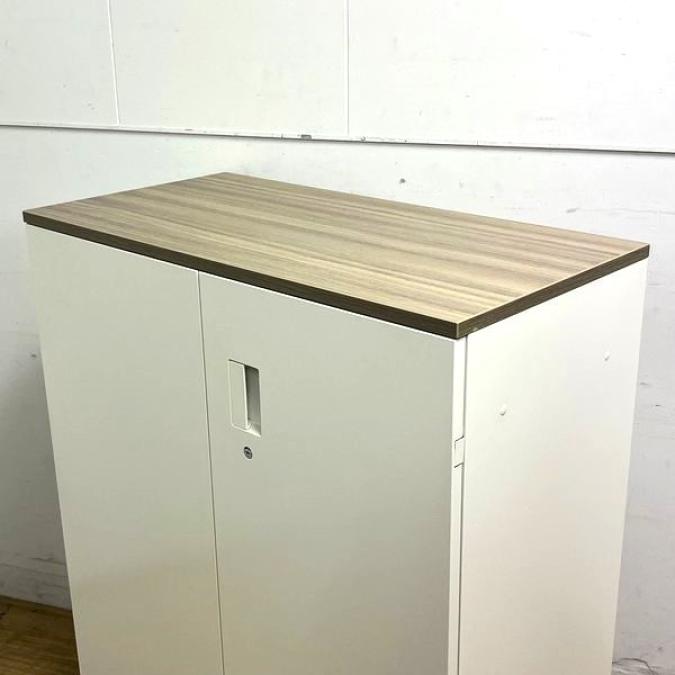 【状態良好】イトーキ エスキャビネット 両開き書庫 鍵付き シリンダー錠 ホワイト 天板付き(アッシュドオークM色) A4×3段分を収納可能- 名古屋千種店