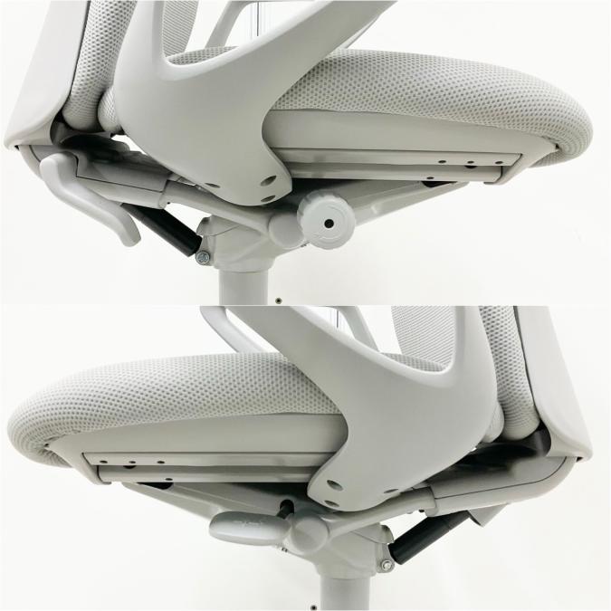 - 座面の高さは、上下ストローク最大92mmで無段階調節可能。フィットする高さに調整できます。